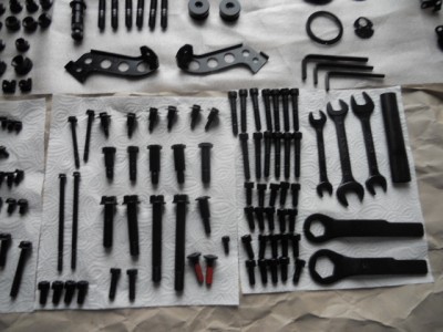 Achja, insgesamt sind das auf dem Foto 441 Teile. Manches ist doppelt/mehrfach vorhanden, gerade Muttern/Schrauben die ich teilweise im 10er Päckchen bekam (waren laut vwmt.de bzw. Volker Wildung nicht einzeln bei Kawa zu bekommen)