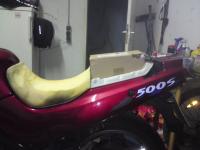 Der Soziusgriff wird abgenommen und die Lücke die hinter der Sitzbank ist, habe ich in mühvoller Kleinarbeit mit Glasfasermatten und Harz geschlossen. Das war echt nicht einfach...