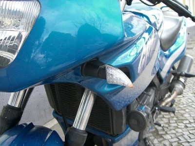 Umbauten:Xenon,LED-Miniblinker,LED-Kennzeichenbel.,blaues umgeschweißtes Geweih,SaitoII-Heizgriffe,Blaue LEDs und 2in2 Barracuda Carbon