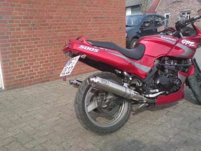 Kawasaki GPZ 500S, EZ: 7/94, 60 PS, <30000km, Hashiru 2in2, Rizoma Blinker vorne, Halbes Candy Wine Red Ich bremse auch für... ne... wegen Blondinen! NRW-Stammtisch! Jeder 2. Sonntag im Monat im Cafe Hubraum Solingen!