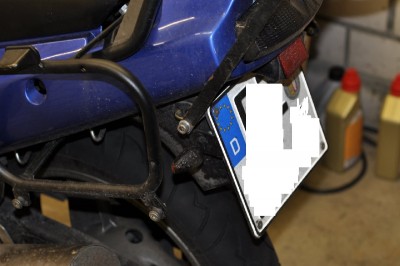 Der Kennzeichenhalter (also das wo die Blinker dran sind und das Nummernschild draufgenietet ist) ist Eigenbau aus 2mm Alublech. Wenn ich das nochmal machen müߟte würde ich etwas stabileres (dickeres Alu oder gleich Stahlblech, das aber wieder rostet) nehmen und vielleicht die Ohren der Blinker gerade abkanten und nicht schräg (sieht zwar schön aus, macht aber Arbeit). Den ganzen Aufstand habe ich gemacht, um nicht diese Atomblinker am Träger zu haben und den Träger bei Bedarf einfach demontieren zu können (was bisher aber nicht passiert ist).