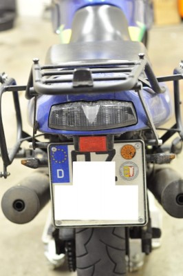 ..der Topcase Träger sieht ähnlich wie bei meiner aus, allerdings gehören die Blinker eigentlich in die Röhren gesteckt (den Plastikteil rund um die Schraube abziehen).