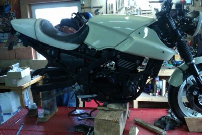 Außerdem hab ich die Halterung für den Tacho abgefeilt ![]() ![]() Zum Unitrak: Mädels, sucht euch liebe Männer, die helfen ![]() Erstmal alles ausbauen: Rad raus, Hauptständer ab, dazu muss aber der Krümmer runter, damit da schön dran kommt, dann Unitrack raus, Knochen raus, um die Hülse mal sauber zu machen. Dann die alten Lager raustreiben, meine Männer haben sie mit Nüssen rausgehauen, Unitrak sauber machen, innen fetten, mit dem Männerföhn heiß machen und die neuen dann wieder reinhauen. Bei der Gelegenheit hat Radius mein Federbein gleich mal sauber gemacht und neu eingestellt ![]() Dann noch mal geschaut, ob für den TÜV soweit alles passt, das Standlichtlämpchen noch fix getauscht und ab nach hause... ...denkste! Der Tacho hatte andere Ideen als ich. Der Abnehmer war nicht nah genug an der Bremsscheibe. Also hat Speedy ihn noch eingestellt, ist noch ne kleine Runde gefahren, alles geht. Achso bei der Gelegenheit: Ein ganz ganz dickes Dankeschön an Eiskehle, Radius und Speedy!!!