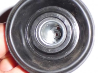 Wenn man sich das von innen betrachtet sieht man: Da ist überhaupt kein Platz, um die Bohrung zu erweitern. Da bohrt man bestenfalls in die Wand des Schiebers rein.