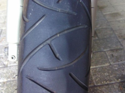 Fotos hab ich, auf denen kommt das Problem der Täler aber nicht raus. Der Sägezahn ist meiner Meinung nach kaum ein Problem. Gemein sind die Täler am Übergang der verschiedenen Gummimischungen. Da der Vorderreifen betroffen ist mutieren Flicken in der Fahrbahn, Spurrinnen und Längsrillen zu echten Wachmachern. Putzig ist es auch wenn ich in leichter Kurve genau das Tal im Reifen fahre. Dann kann sich der Reifen nicht wirklich entscheiden ob er der Kurve folgt oder sich wieder aufstellt. Der 270 Kilo Metallhaufen hat ja ein Fahrwerk das aus Urzeiten stammt (ähnlich wie bei der Zette). Wenn diese Fuhre ins Schwingen gerät ist Schluss mit Lustig.