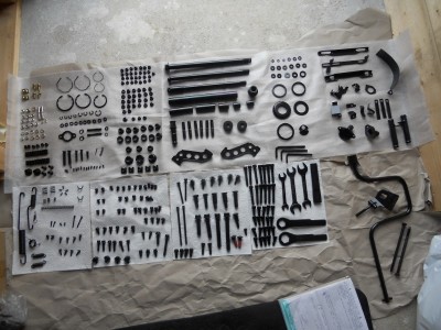 Achja, insgesamt sind das auf dem Foto 441 Teile. Manches ist doppelt/mehrfach vorhanden, gerade Muttern/Schrauben die ich teilweise im 10er Päckchen bekam (waren laut vwmt.de bzw. Volker Wildung nicht einzeln bei Kawa zu bekommen)