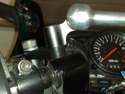Man könnte aber auch noch ein Teil davon selber machen. Der Vorteil an den beiden Kaufteilen (Spiegeladapter) ist allerdings, daß die Schrauben (M10x1,25) auch schon dabei sind und noch ein/zwei Verlängerungen.