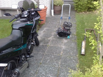 So Motor iss nun da habe ich mit 6500 km bekommen nen neuen spoiler und nen lampenträger plus ner neuen auspuffanlage, so nun wird ab heute des we gebastelt und geschraubt. Big Grin Think