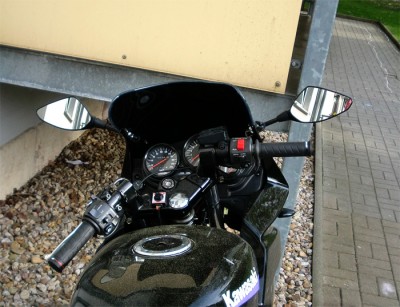 Da ich das ganze mit Karosseriekleber und Sekundenkleber FIXIERT habe, sieht aus, als würde es zum Bikde gehören. Nein, es ist nicht versaut, ging aber nicht anders. Ja, man kann sich jetzt auf die Spiegel drauf setzen