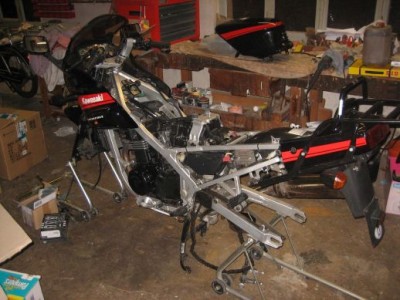 Ich häng´ euch nioch was vom derzeitigen Stand an. Nicht irritieren lassen, ich weiß, bei mir schaut´s aus wie Sau...Ich muss dringend aufräumen ( spätestend wenn die Kawa fertig ist ). Die Kartons stammen von meiner aktuellen Ebay-Aktion, bin schwer am Verpacken...
