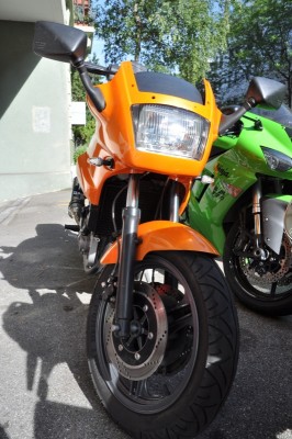 am wochenende gab es die erste richtige Probefahrt. Tongue echt ein unterschied... Die Stahlflex leitungen und die Bremszangen mit zwei Kolben von "gpz-norden" haben schon ne andere Bremsleistung und sind viel besser zu kontrolieren.