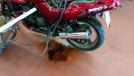 Und es läuft Benzin aus dem linken Auspuff.