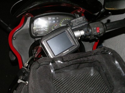 Vorteil der Kugel (plus ein Gelenkteil): das Navi kommt hoch. So kann ich auch was sehen mit Tankrucksack.