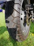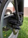 Macht einen durchwachsenen Eindruck, einerseits wenig ausgeblichene, gute Lackteile (bei dem Lacksatz bei Laternenparkern immer ein Problem), andererseits Ausgeblichene, verkratzte Ritzelabdeckung und der Zustand der Bremse, die das Gegenteil vermuten lassen. Könnte eventuell aus mehreren Maschinen neu aufgebaut worden sein.