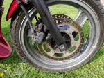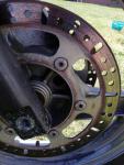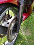 Die Bremsscheiben kommen mir seltsam vor, original haben die 1994er keine länglichen Schlitze drin sondern nur Löcher, soweit ich weiß, und der innere Teil ist schwarz lackiert.