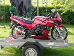 Tara meine GPZ 500D Candy Wine Red BJ 1994 36.000km nach 5 Jahren Standzeit und erster Winterwartung nun zuverlässig im Dienst.