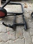 Guckst du Handbuch guckst du Foto.. Hab auch ne Weile gebraucht aber da ist das fette Metallteil direkt hinter dem Kunststoff und das ist der Griff zum aufbocken (laut Handbuch) Faszinierend oder, da muß man erstmal drauf kommen.. Und da anzupacken und sie aufzubocken ist sowas von easy. Nur wie gesagt fehlen die bei der von meinem Sohn, da hast an der Stelle nur den Kunststoff in der Hand und dat bringt ja nuschtnix...