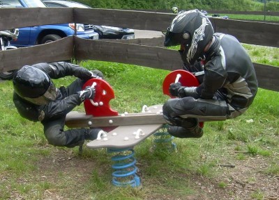 Das Bild mit der Wippe ist ja zu goldig. So üben Biker also das Kurvenfahren.