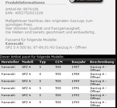 Gehts dir bei den Gaszügen auch um die Ummantelung? Wenn nicht,kann ich dir empfehlen die Zubehörzüge von Louis oder Polo zu kaufen.Dazu die richtigen Hülsen die am Ende draufgeschraubt werden.