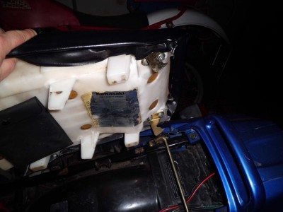 Ich weiß, dass das Bordwerkzeug ziemlich weit oben Richtung Bremslicht geschoben wurde, bevor die Bank wieder draufgesetzt worden ist. Vielleicht reicht ein weiteres reindrücken nach oben.